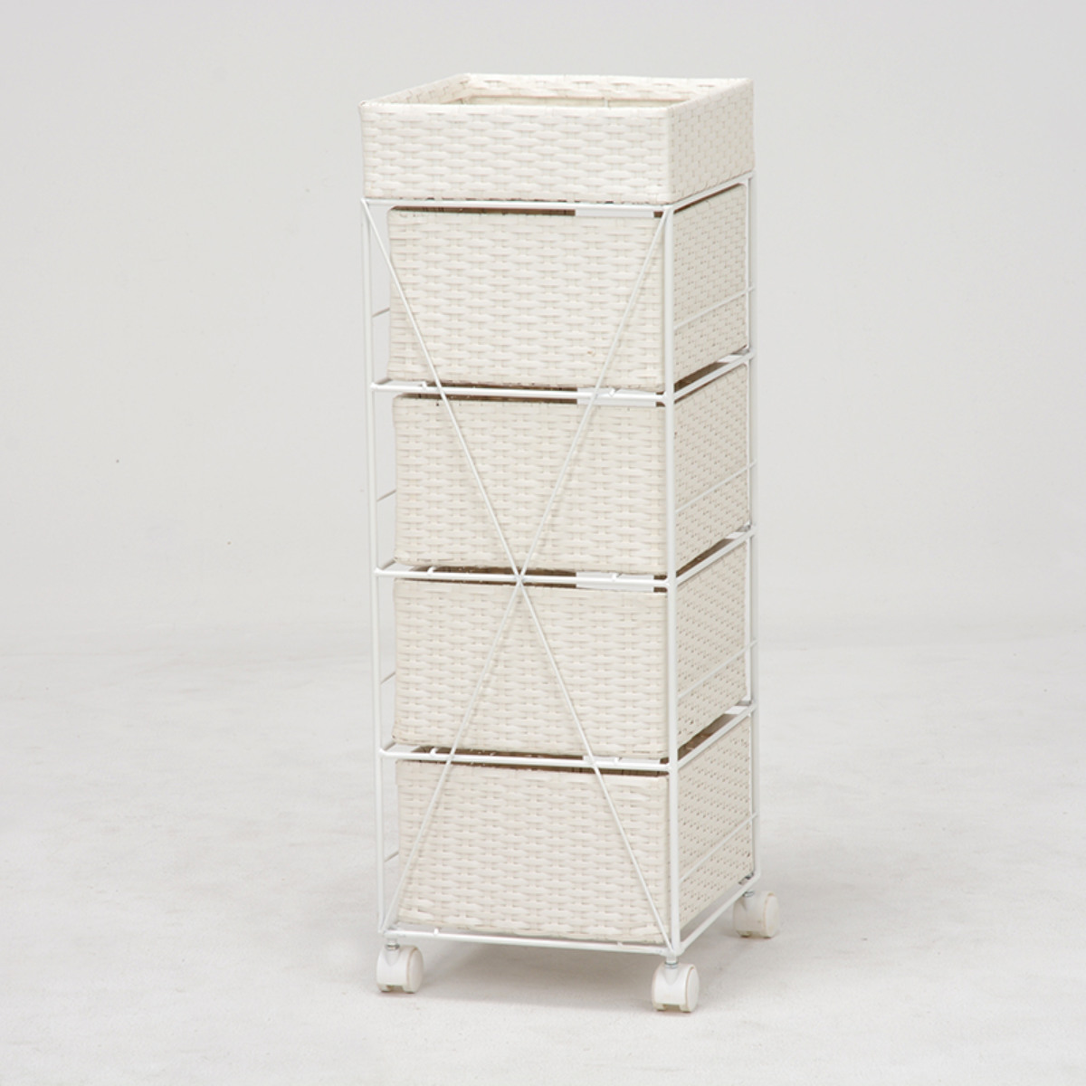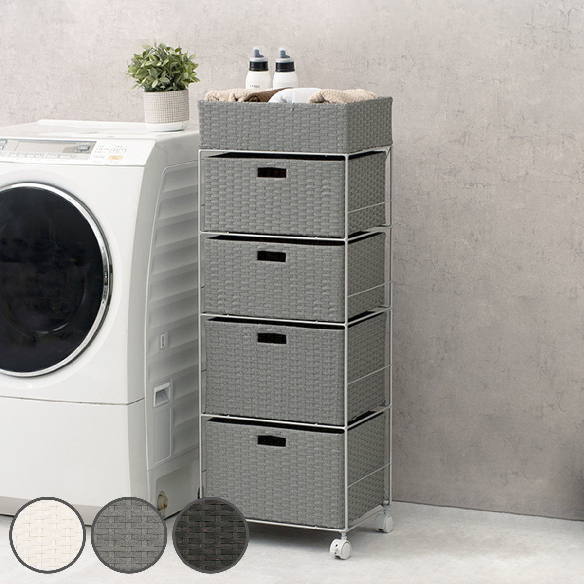 ランドリーチェスト 幅40.5cm 4段 引出し キャスター付 完成品 ( ラタン調 ランドリー チェスト ラック 防水 撥水 収納 かご )