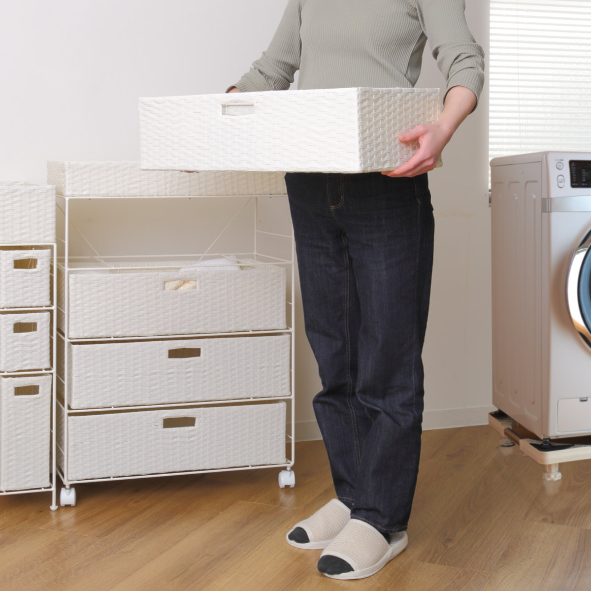●通気性が良く水回りでも使いやすいランドリーチェストです。
