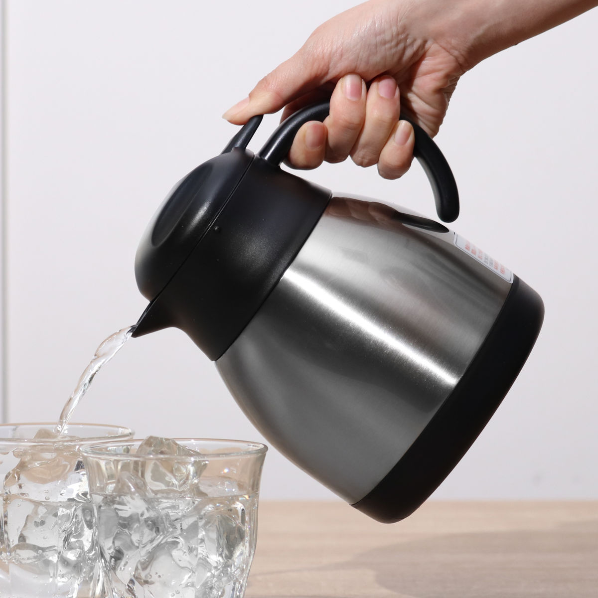 | 材質 | 本体内側:ステンレス鋼 本体外側:ステンレス鋼(焼付け塗装) 口がね:ポリプロピレン ふた栓:ポリプロピレン 開閉レバー:ABS樹脂 パッキン:シリコーンゴム |
