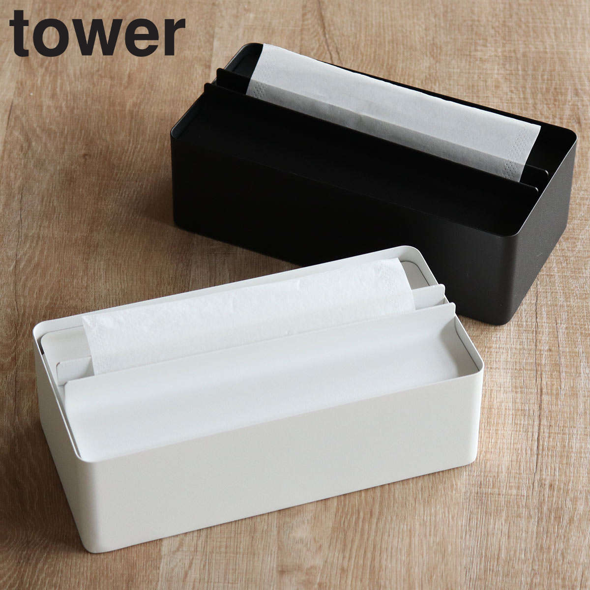 特典付き 山崎実業 tower 蓋付きペーパータオルケース タワー ( 4903208047616 タワーシリーズ ペーパータオルケース 卓上 ティッシュケース )