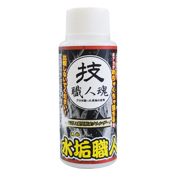 水まわりのお困りの汚れを解決水垢職人は、酸性の粉末と研磨剤を両方粉体で配合することにより水に濡れると酸性液体になり研磨剤も溶けずに使える強力な洗浄剤です。