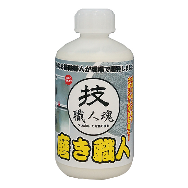技職人魂 磨き職人!溶けない微粒子研磨剤と酸性で、水周り用(キッチン、シンクなど)、傷を付けずに磨きたい箇所にお使いいただけます。