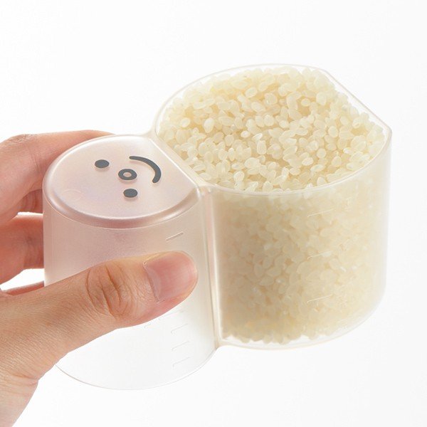 便利で可愛い計量カップ0.5合と1合をくっつけたら、ゆきだるまのカタチになりました。便利でかわいいお米の計量カップです。