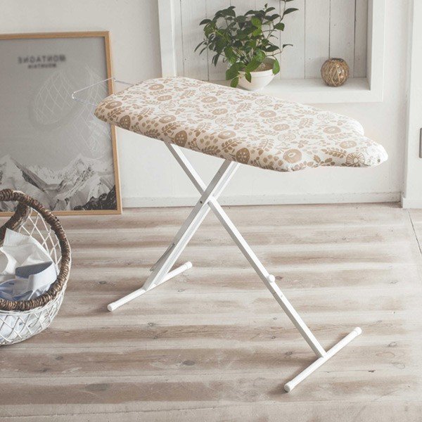 | 材質 | 表面布:ポリエステル・綿 天板・脚部:スチール(粉体塗装) クッション材:ポリエステル ボタンプレスゾーン(凸凹吸収クッション):ポリウレタンフォーム アイロン置台:スチール(クロームメッキ) キャップ:ポリエチレン |