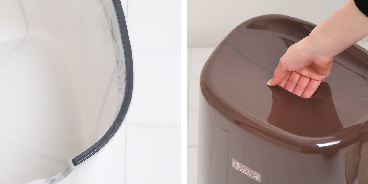 | 滑り止め付き 脚部分には滑り止めが付いているので、安心してお使いいただけます。床面の傷つき防止にもなります。 | 持ち運びしやすい 座面の穴に手を入れて持ち運びでき、掃除のときの移動も簡単です。 |