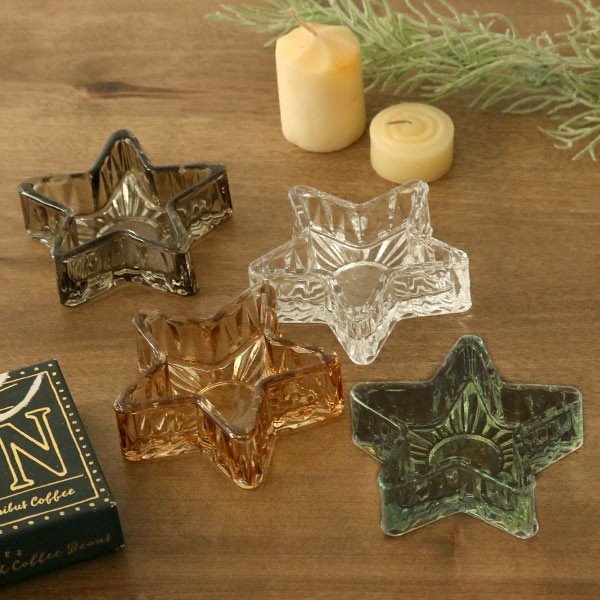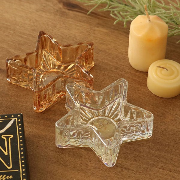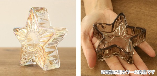 きらきら輝く星形のガラストレイ オーロラタイプアクセサリーや小物置きにピッタリなガラスのトレイです。ガラスにはオーロラの輝きがプラスされています。キャンドルホルダーとしてもおすすめです。