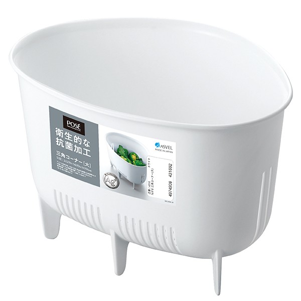 インテリア性を追求した美しいフォルムです。優しく上品な色味でキッチン空間を彩ります。シンクのコーナーにぴったりフィットする形状です。抗菌加工(Ag+)と水切れの良いスリット形状で衛生的です。【商品詳細】 サイズ/約幅22.2×奥行16.7×高さ14.7cm 内容量/1個 材質/ポリプロピレン《脚付き コーナーラック シンクコーナー 流し台 ごみ箱 シンクゴミ箱 生ゴミ受け ダストボックス ダストポケット 白 キッチン用ゴミ箱 ゴミ箱 シンクダストポケット 流し台ゴミ箱 流し用ゴミ箱 シンク用ゴミ箱 シンク回り シンク周り 水周り用品 水回り用品 水まわり用品 キッチン 収納 キッチン用品 キッチン雑貨 キッチン小物 キッチンアイテム 台所用品 キッチン整理用品 シンプル 無地 おすすめ オススメ 便利 ホワイト》