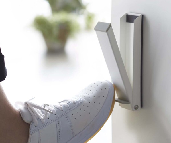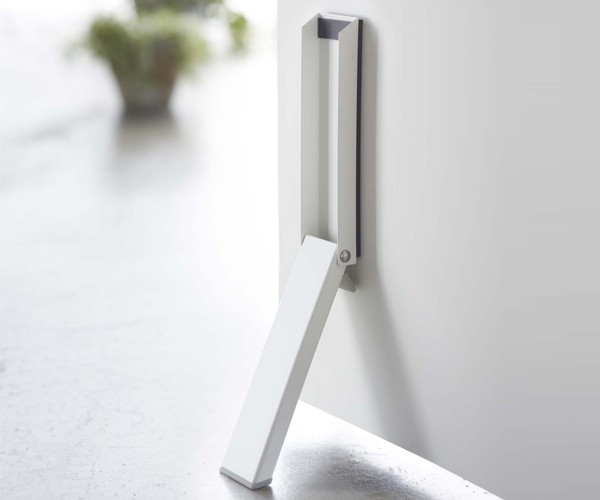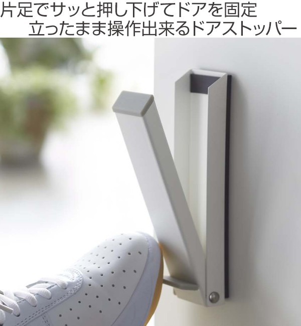 使わない時はスマートに折り畳めるドアストッパーを戻す時も片足でラクラク収納出来ます。折り畳むとスリムになり邪魔になりません。