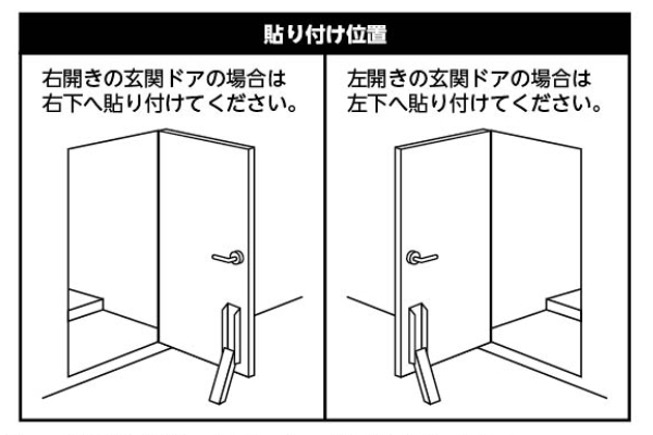 | 備考 | 設置箇所:磁石のくっつく平らな面のスチール製ドア(ドア下部と地面との間が10cm以上あるドアには取り付けられません。) |