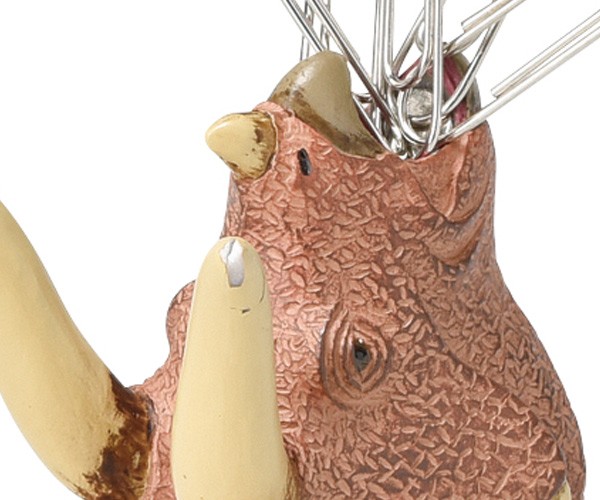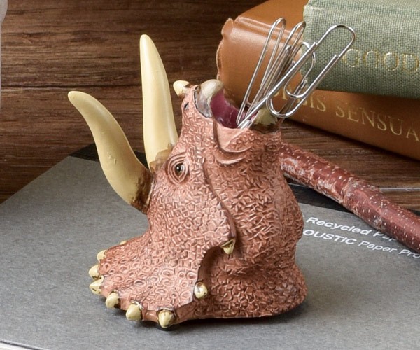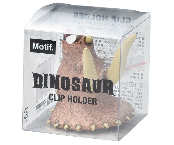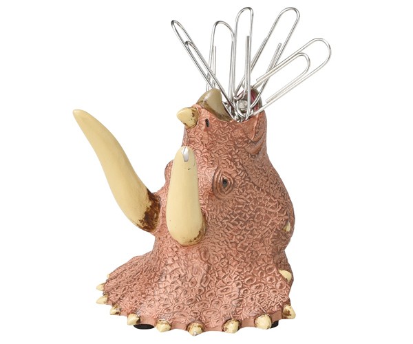 見た目はそのまま小さくなった恐竜細部まで手の込んだリアルさが魅力的な、トリケラトプスのクリップホルダーです。クリップも5個付属しています。机上がまるで恐竜時代に逆戻りしたような迫力があります。