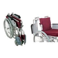 | 持ち運びやすい!背折れタイプ 背折れタイプはスリムに折りたたむことができるので車への積み込みや、収納に便利です。 | 肘置き跳ね上げ機能付き 肘置き部分が跳ね上がり、ベッドなどへの移乗の際に、肘置きが邪魔になりにくい便利な機能です。 |