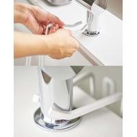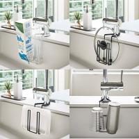 蛇口に掛けるだけ!シンクにちょい置きスペースを作れる蛇口のネックを挟み込んで取り付ける、今までにないドライホルダーです。洗浄用品が省スペースで収まります。シリコンカバー付きのスチールでしっかりホールドするので安定感もバッチリ◎。