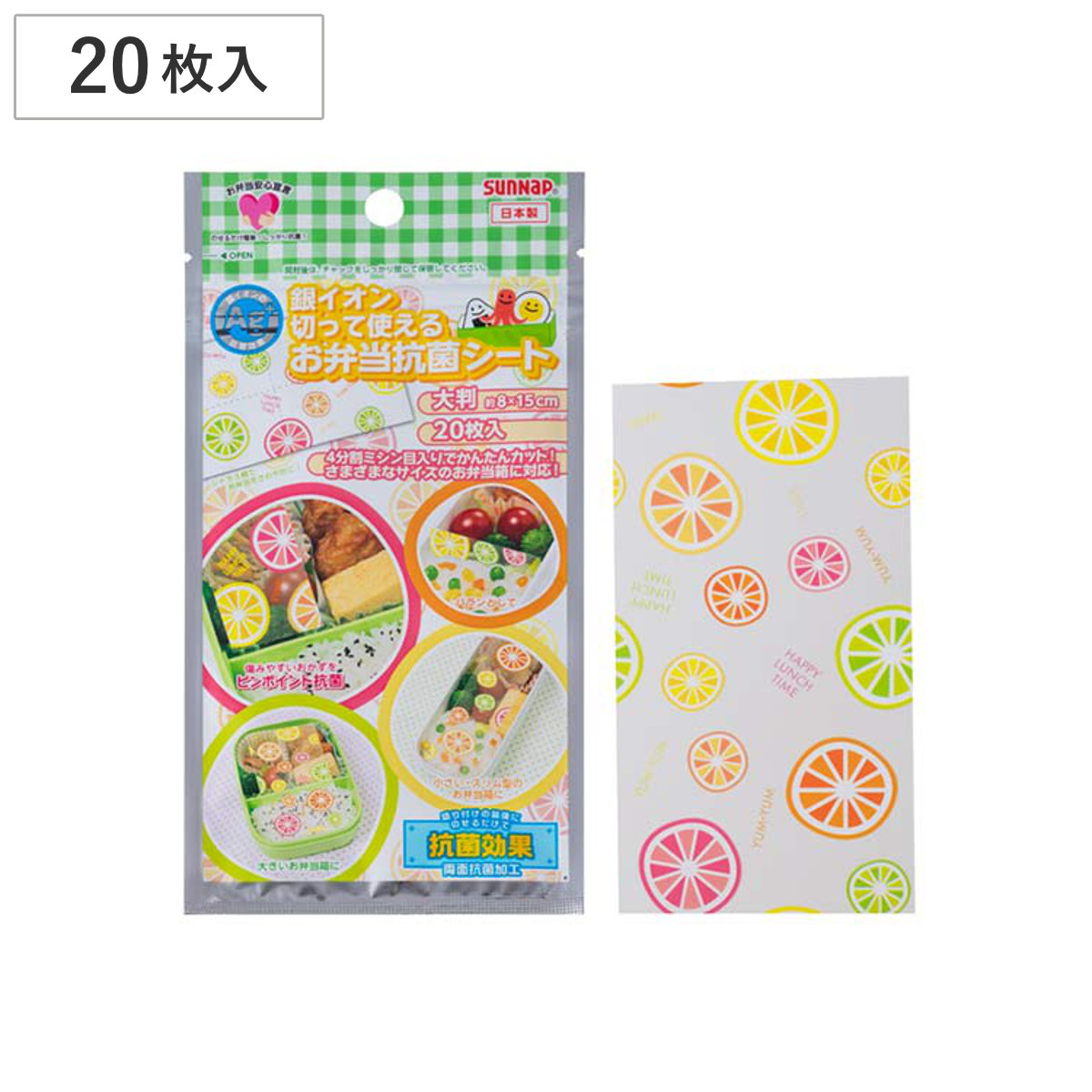 銀イオン 切って使えるお弁当抗菌シート 大判 20枚入 ( 抗菌シート お弁当 果物柄 20枚 かわいい お弁当グッズ バラン )