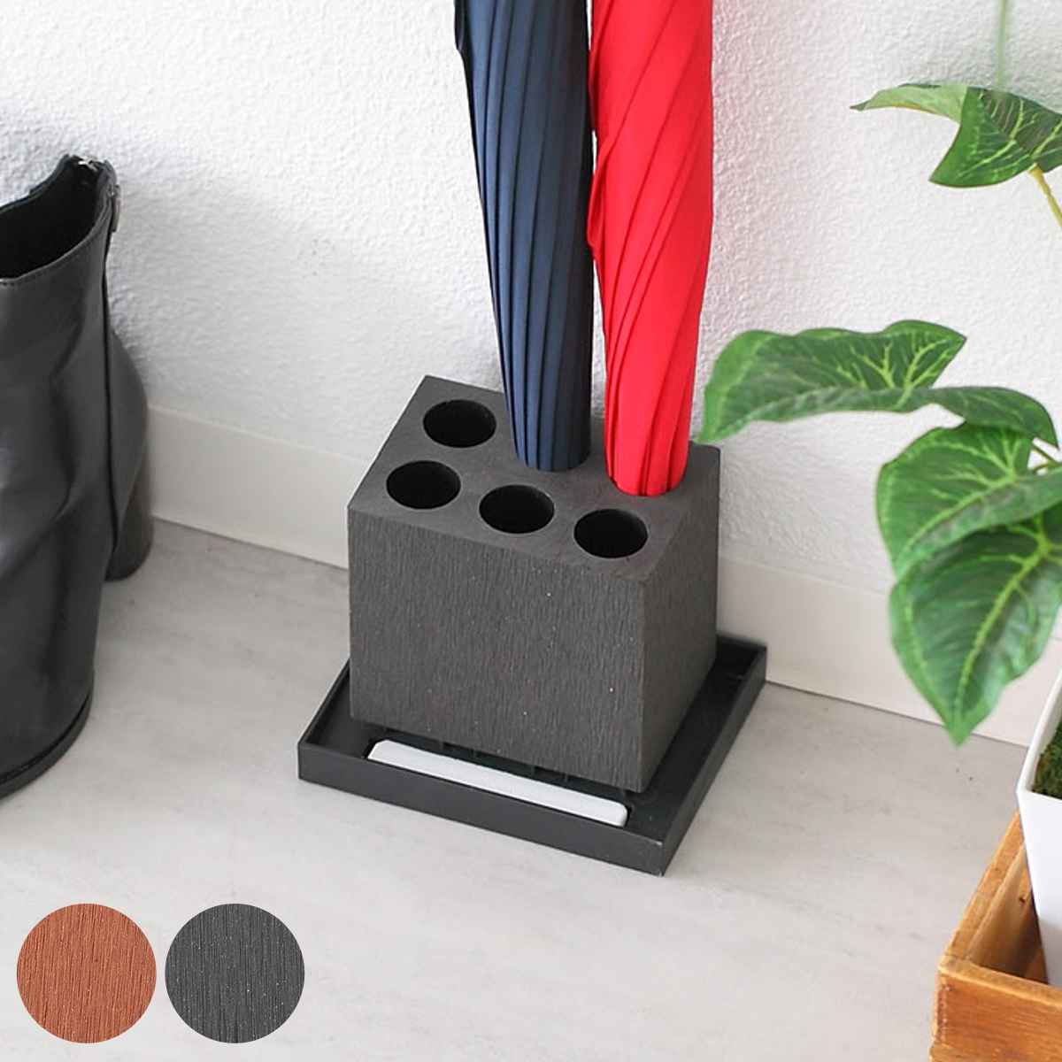 ●木のようなお洒落な質感を持ちながら、耐水性、耐久性に優れた傘立てです。