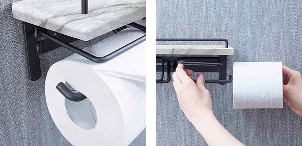 大理石調のお洒落なトイレットペーパーホルダーです。シックな雰囲気でトイレ空間をお洒落に演出します。