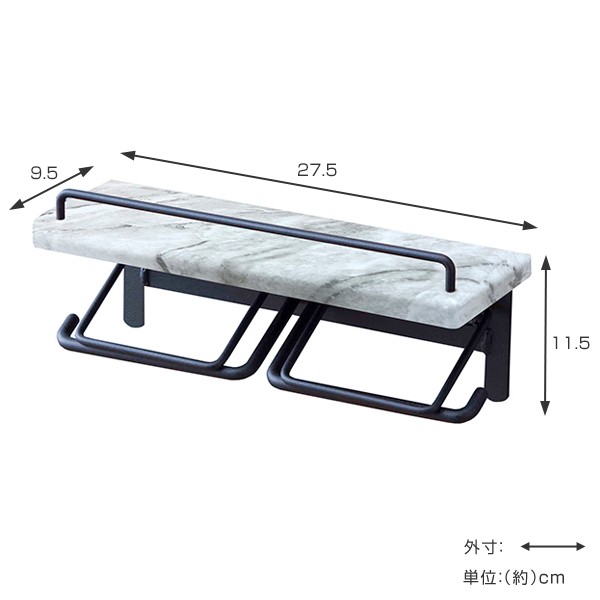 トイレットペーパーホルダー 棚付 大理石調 2連タイプ 幅27.5cm ( ペーパーホルダー トイレットペーパー ダブル 2連 )