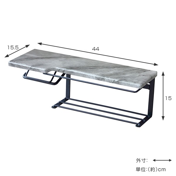 トイレットペーパーホルダー 棚付 大理石調 ストックタイプ 幅44cm ( ペーパーホルダー トイレットペーパー 2ストック )