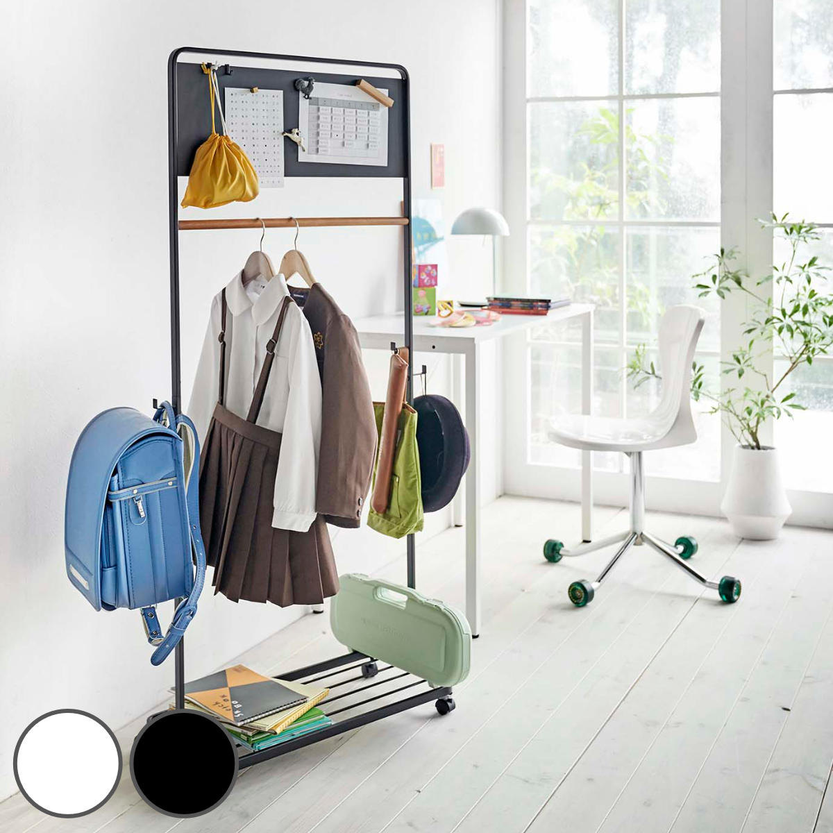 | 材質 | 本体:スチール(粉体塗装) ハンガーバー:天然木 キャスター:ナイロン |