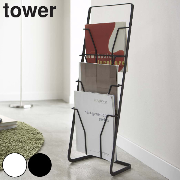特典付き 山崎実業 tower マガジンスタンド タワー 4段 ( 4903208065122 マガジンラック 白 黒 マガジン スタンド ラック 四段 ディスプレイ 雑誌 本 新聞 )