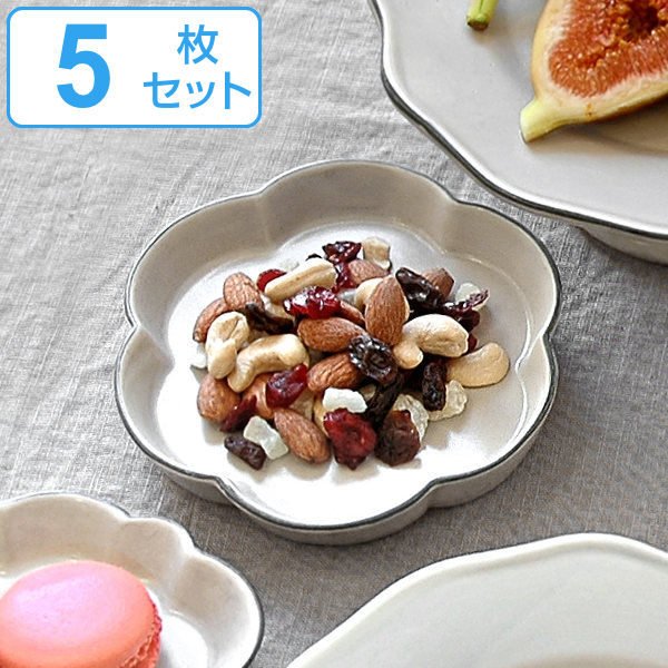 同色5枚セットメイン料理に添える副菜を盛りつけたり、チョコレートやクッキーなどの小さなお菓子を乗せるのにぴったりなサイズです。まるでお花のようなレリーフ(ふちのデザイン)とアンティークのような優しい色味が、テーブルのアクセントになります。お部屋や玄関で、アクセサリートレイとして使っても素敵です。
