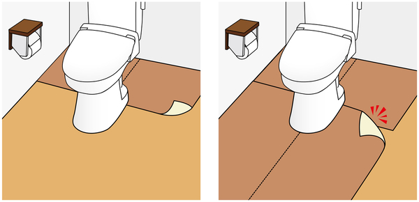 | | 【4】 最後に便器周りのヒダ状の部分をカットします。ドア付近やスキマなどは余ったシートで重ねて貼り付けます。