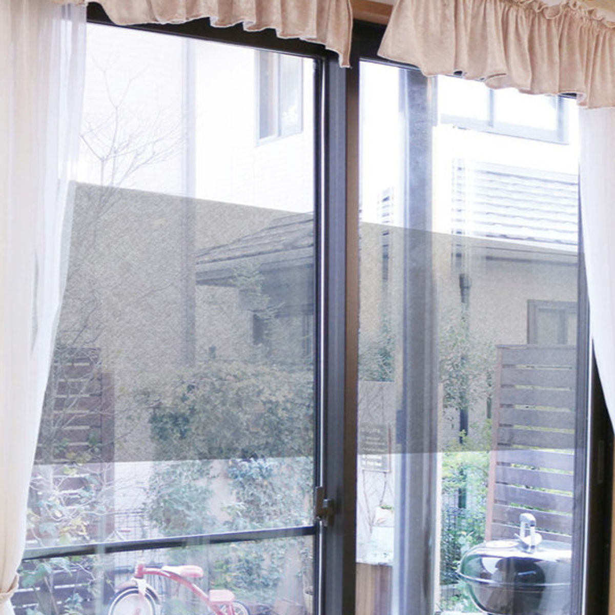 ●室内からは外の景色が見え、室外からは中が見えにくいのでプライバシーを守ります。