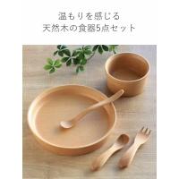成長に合わせて長く使える 天然木食器5点セット便利で程よいサイズのお皿とボウル、成長に合わせて使えるカトラリーの5点セットです。離乳食から幼児食へと幅広く、お子さまの成長に合わせてお使い頂けます。