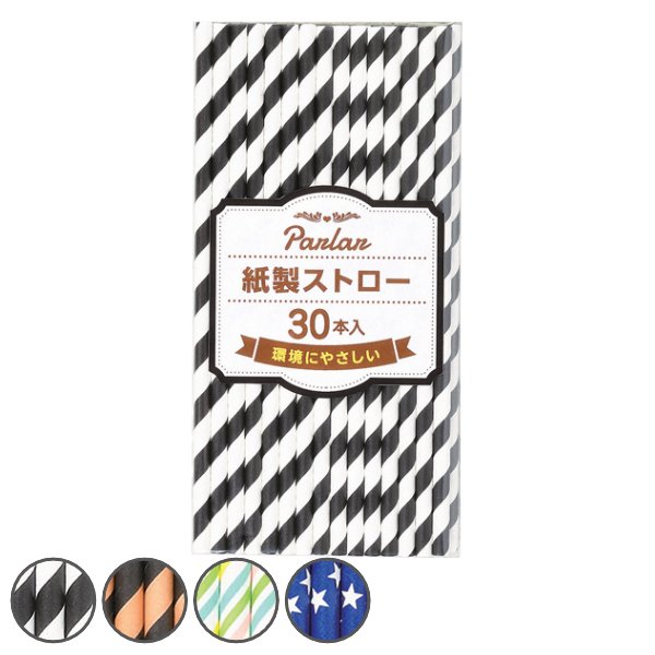 ストロー 30本入り パーラー 紙製 ( 紙ストロー 直径6mm 20cm 使い捨て 紙 ペーパーストロー )