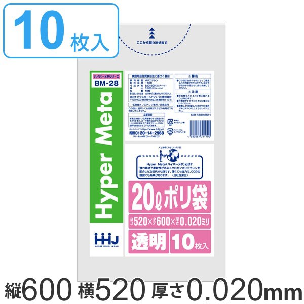 ポリ袋 20L 52x60cm 10枚入り 透明 ( ゴミ袋 20 リットル 厚さ 0.02mm メタロセン 強化剤 つるつる ゴミ ごみ ごみ袋 小分け )