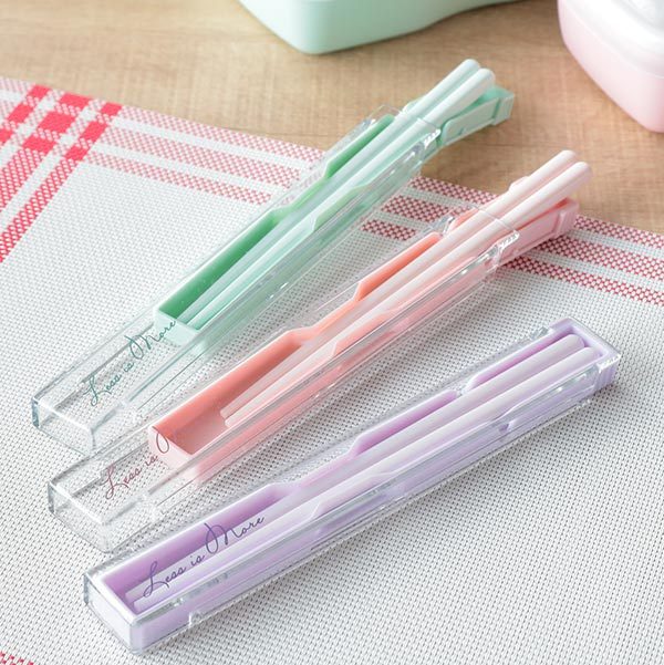「レスボックス」シリーズの箸・箸箱セット「レスボックス」シリーズの箸・箸箱セットです。シンプルなデザインでどんなお弁当箱にも合わせやすく、クリアのケースはお箸の入れ忘れにも気づきやすいです。食洗機対応なのでお手入れ簡単です。