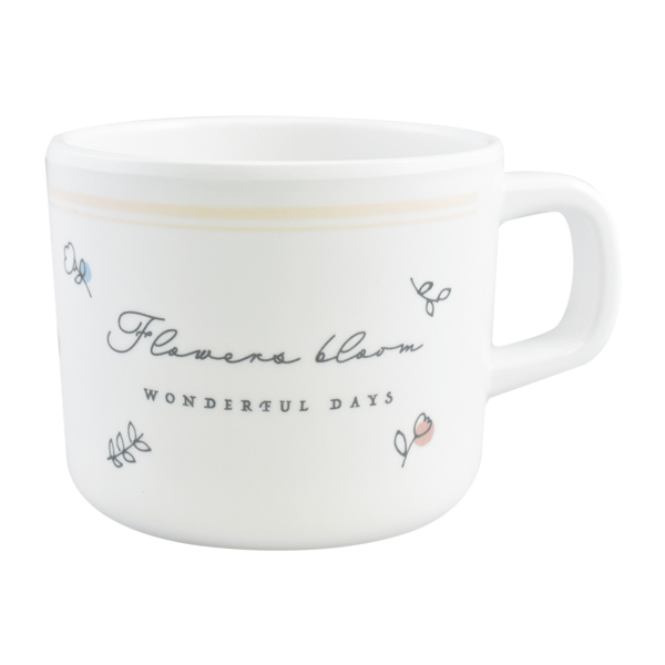 淡いパステルカラーにたくさんのお花がデザインされたメラミンマグカップです。軽くて、落としても割れにくい樹脂製なので、お子さまの日常使いや幼稚園・保育園用に最適です。ご自宅などで使うのはもちろん、ピクニックやキャンプなどのアウトドア食器として使うのもおすすめです。