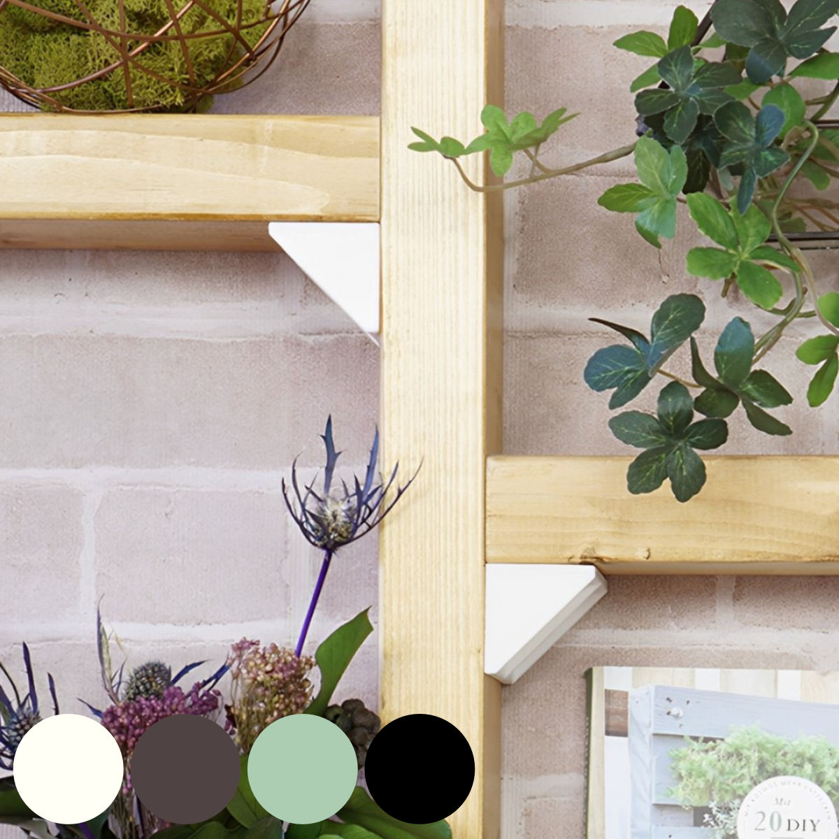 「2×4棚受(後付けタイプ) シェルフサポート」別売りの「LABROCO(ラブリコ)アジャスター」を使って設置した2×4支柱に、棚を取り付けるための棚受けパーツです。後付けタイプの棚受けなので、柱をしっかり設置した後に、棚の高さを決められます。工具を揃えなくても、付属のネジとドライバー1本で気軽に組み立てられるので、「作りたい」を形にできます。