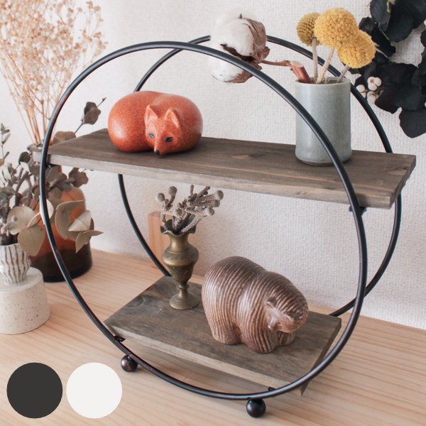 ラック ワイヤー ラウンド テーブルラック インテリア 小物置き ( 2段 小物ラック コレクション ディスプレイラック オブジェ インテリア雑貨 丸 )