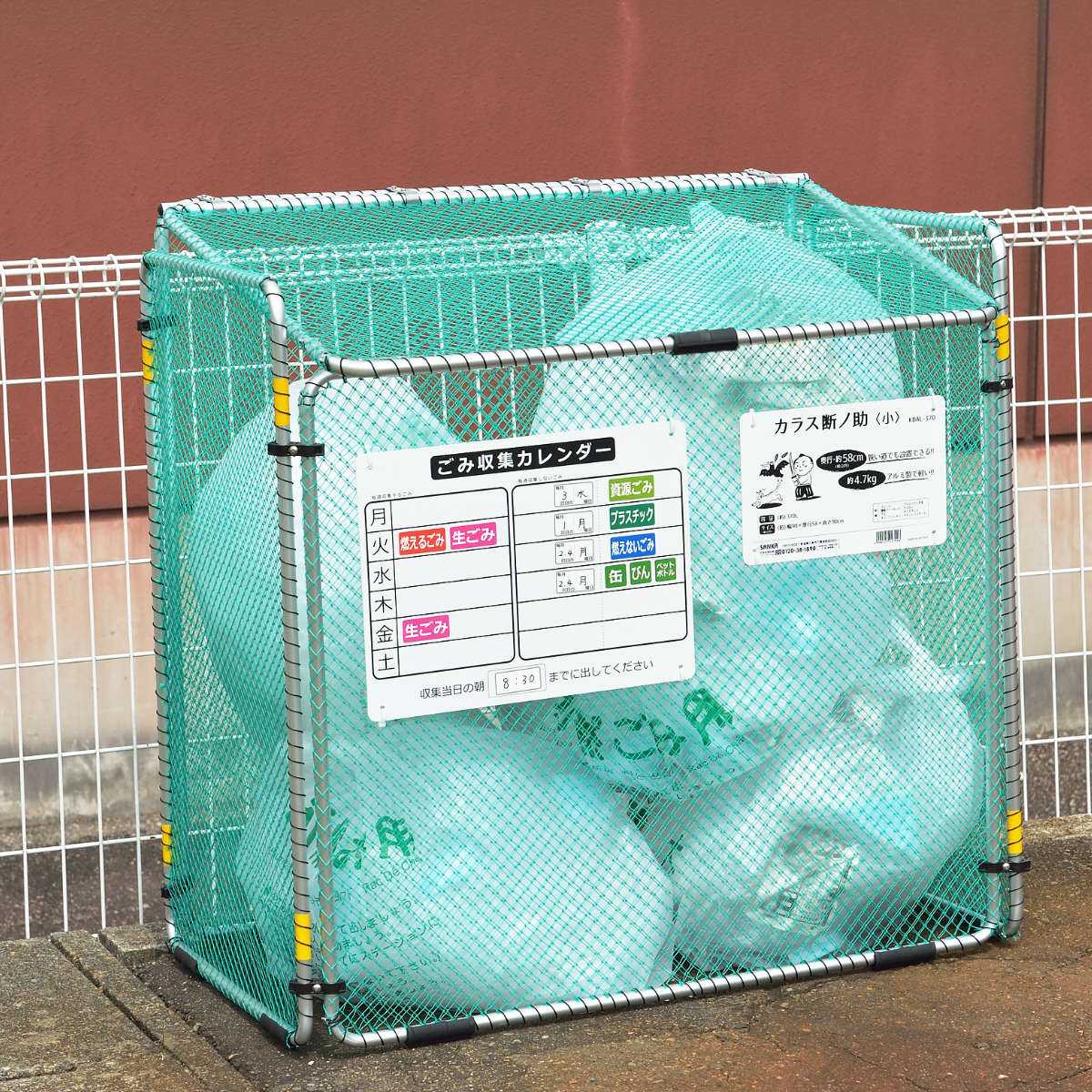 ●カラスや小動物からゴミ捨て場を守る折りたたみ式ゴミ収集ボックスです。