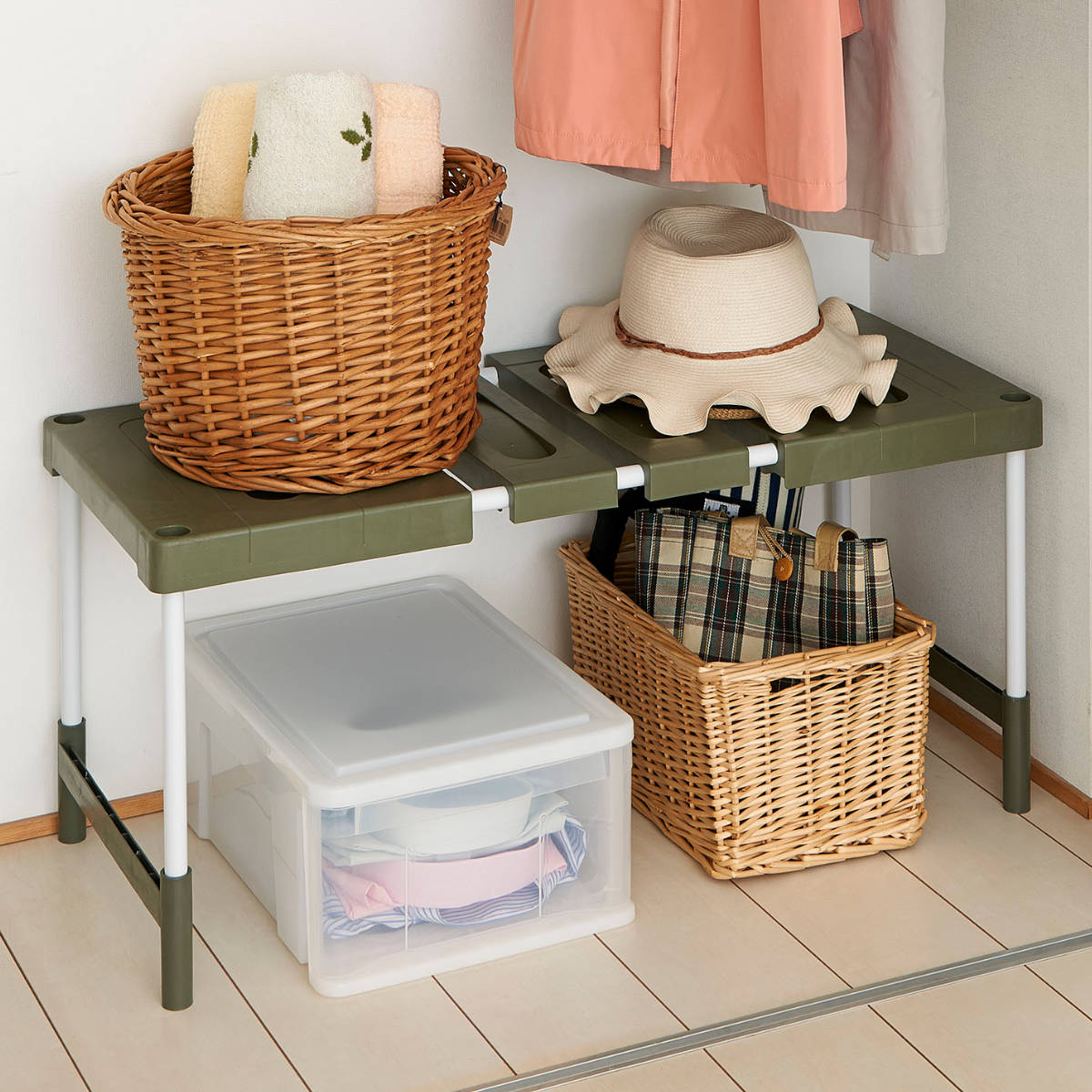 ![]() 伸縮フリーラック ハイ | ![]() 伸縮フリーラック ハイ 2台入り |