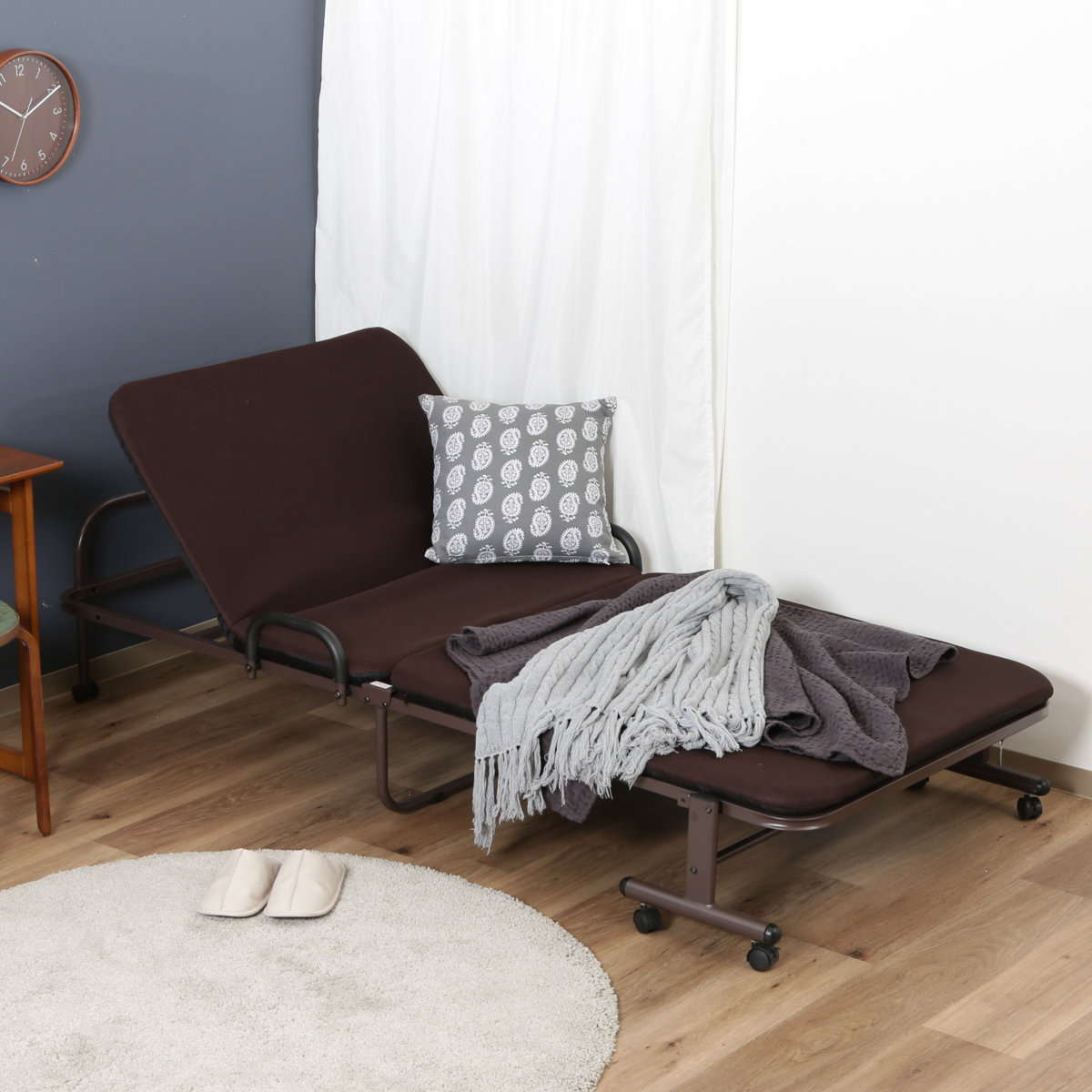 使わない時はスリムに収納ベッドを折りたたむとスリムに収納できて、お部屋を広々と使えます。