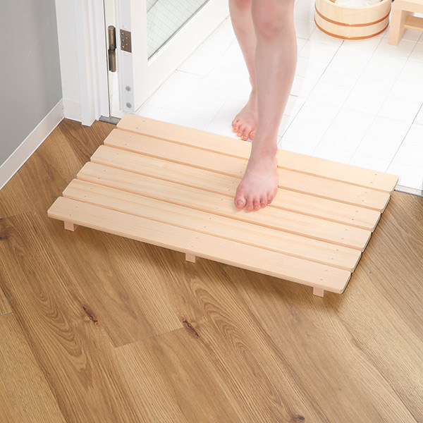 天然木の優しいぬくもりを感じるすのこ天然木の優しい感触に癒されるすのこです。自宅でお使いいただくと、温泉に行ったような気分をあじわえます。昔懐かしい木の浴用品が心地よく楽しい入浴時間を演出してくれます。