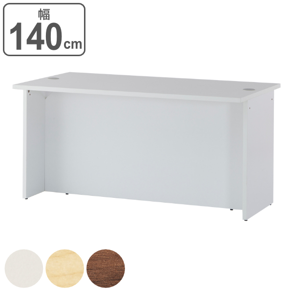 幅140×奥行75cmのカウンターです。幅、奥行きが長めのサイズですので余裕をもってお客様の対応ができ、幕板が天板奥行きの中央に位置していますので、対面での接客に最適です。また、落ち着きのある木目調で、お部屋の雰囲気に合わせて、ホワイト、ナチュラル、ブラウンの3色からお選びいただけます。