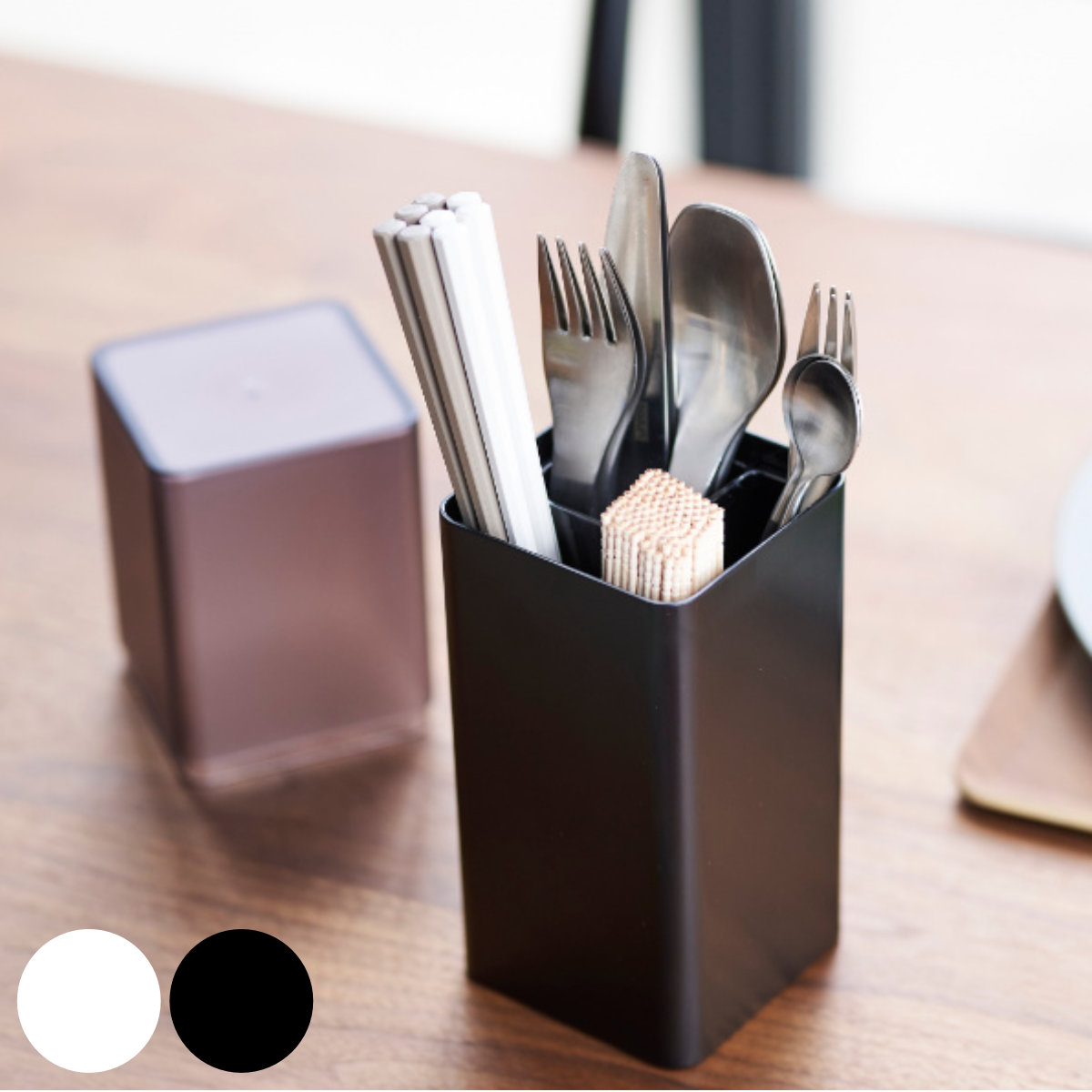 カトラリー類をスリムに立てて、食卓にコンパクトに収納できます。また、蓋付きだからホコリも防いでくれます。
