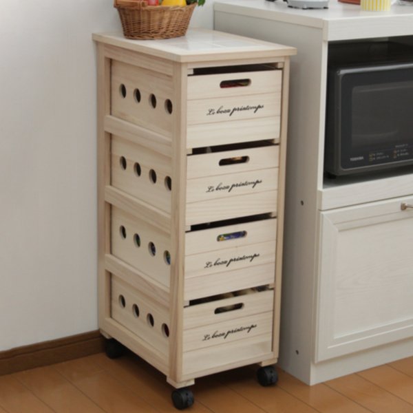 お部屋に馴染むナチュラルな桐製スットカーナチュラルで素朴な風合いが魅力のキッチンストッカーです。桐製なので通気性がよく、保存食品や根野菜の保管にぴったりです。どんなお部屋にも馴染むナチュラルなカラーで、キッチンだけでなくリビングやランドリーで小物類やタオルなどの収納としても活躍します。