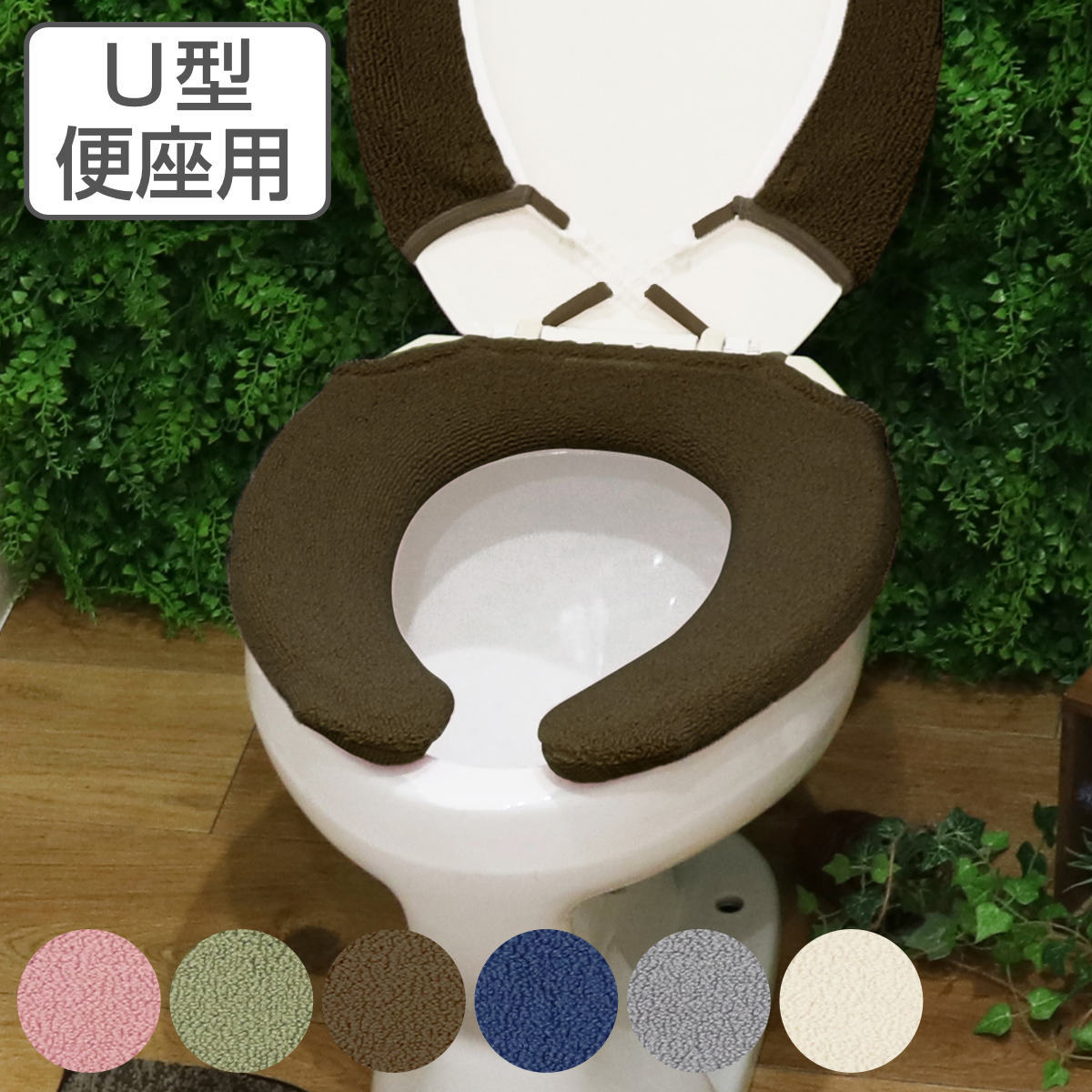ぴったりフィットするU型便座専用カバー便座それぞれの形を考えて作られたU型便座専用カバーです。便座に座ったときのヒヤッとする冷たさを解消してくれます。伸縮性のよいパイル編みで、便座にキレイに装着できます。