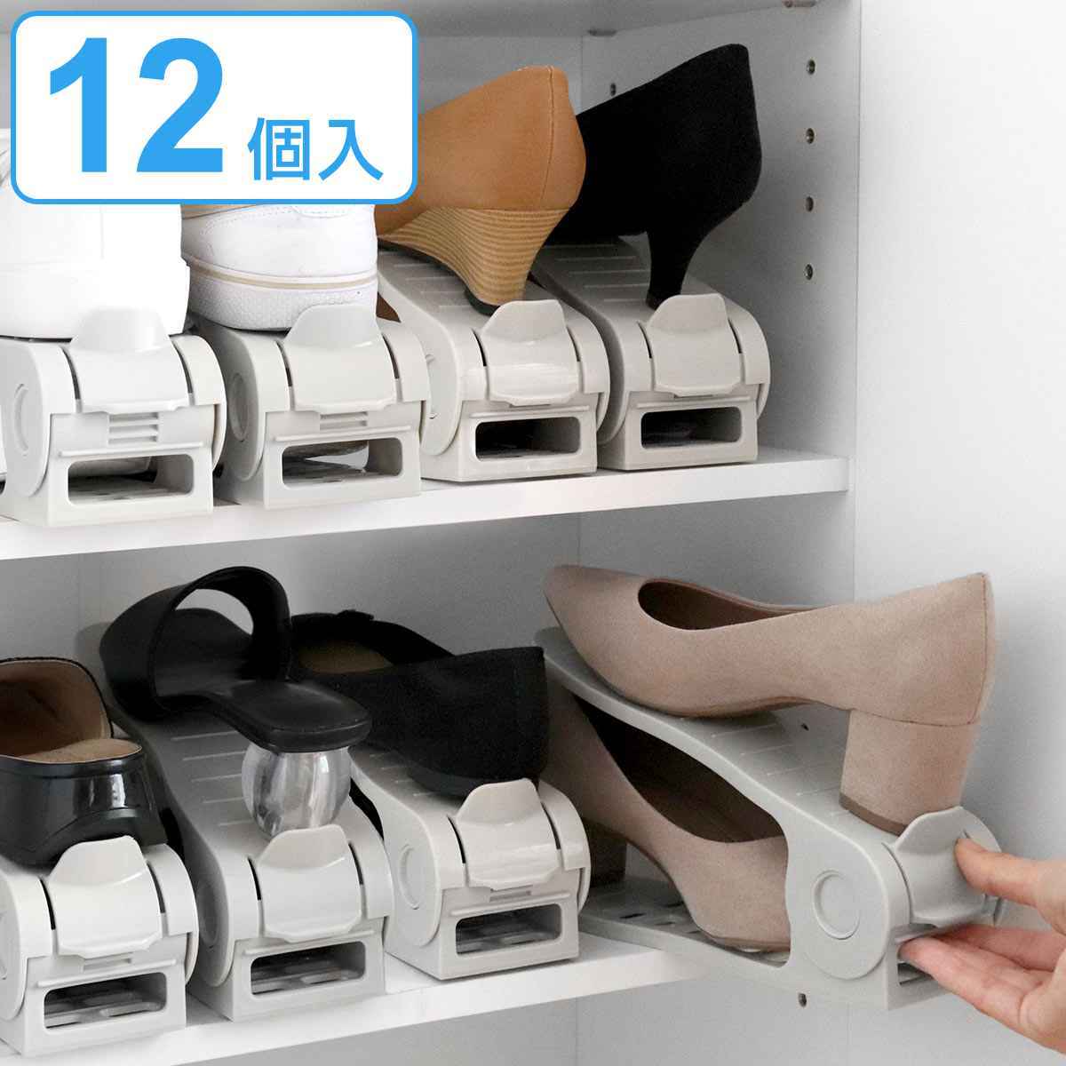 下駄箱の収納量を2倍にできる靴ホルダー 12個入り置き場所に困りがちな靴の収納に大活躍する、靴ホルダー12個入りです。靴ホルダーを使うと1足のスペースで2足の収納ができるので、下駄箱のスペースを最大限に有効活用できます。玄関周りをすっきりと片付けたい方におすすめです。