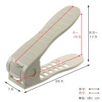 手で簡単に調節可能お手持ちの靴に合わせて、手で簡単に角度調節できます。角度調節は、ストッパーの下段部分をつまみ上げながら行ってください。