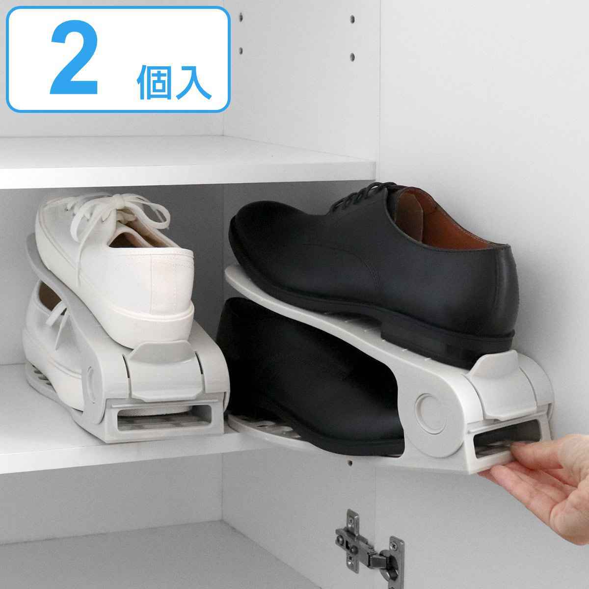下駄箱の収納量を2倍にできる靴ホルダー 2個入り置き場所に困りがちな靴の収納に大活躍する、靴ホルダー2個入りです。靴ホルダーを使うと1足のスペースで2足の収納ができるので、下駄箱のスペースを最大限に有効活用できます。玄関周りをすっきりと片付けたい方におすすめです。