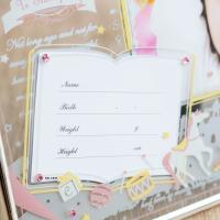 ●名前、誕生日、体重、身長を書き込める名入れシートに誕生の記録を残せます。