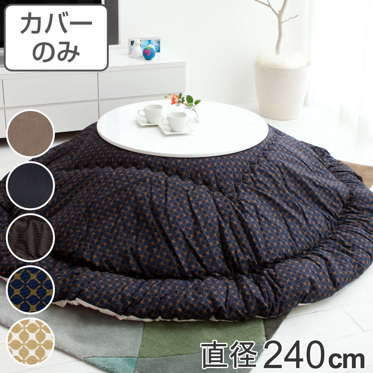 安心・安全・高品質の日本製こたつ布団カバー直径240cmの円形タイプの日本製こたつ布団カバーです。素材にこだわっており、表生地・裏生地ともに綿100%仕様なので肌触りが良く、冬場に困りがちな静電気が発生しにくいため快適にお過ごしいただけます。