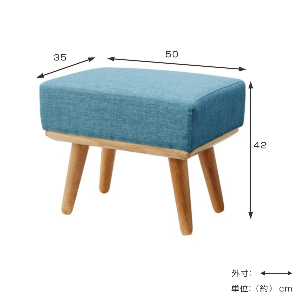 リビングソファ 一人掛け 脚置き 背もたれなし 1人用 いす チェアー 1人 リビング おしゃれ オシャレ お洒落 引越し 引っ越し 新築 新居 新生活 1人暮らし 一人暮らし 約 幅 50 奥行き 35 高さ 42 cm センチ 店舗 カフェ 北欧 布製 ブルー グリーン 青 緑 LH8119