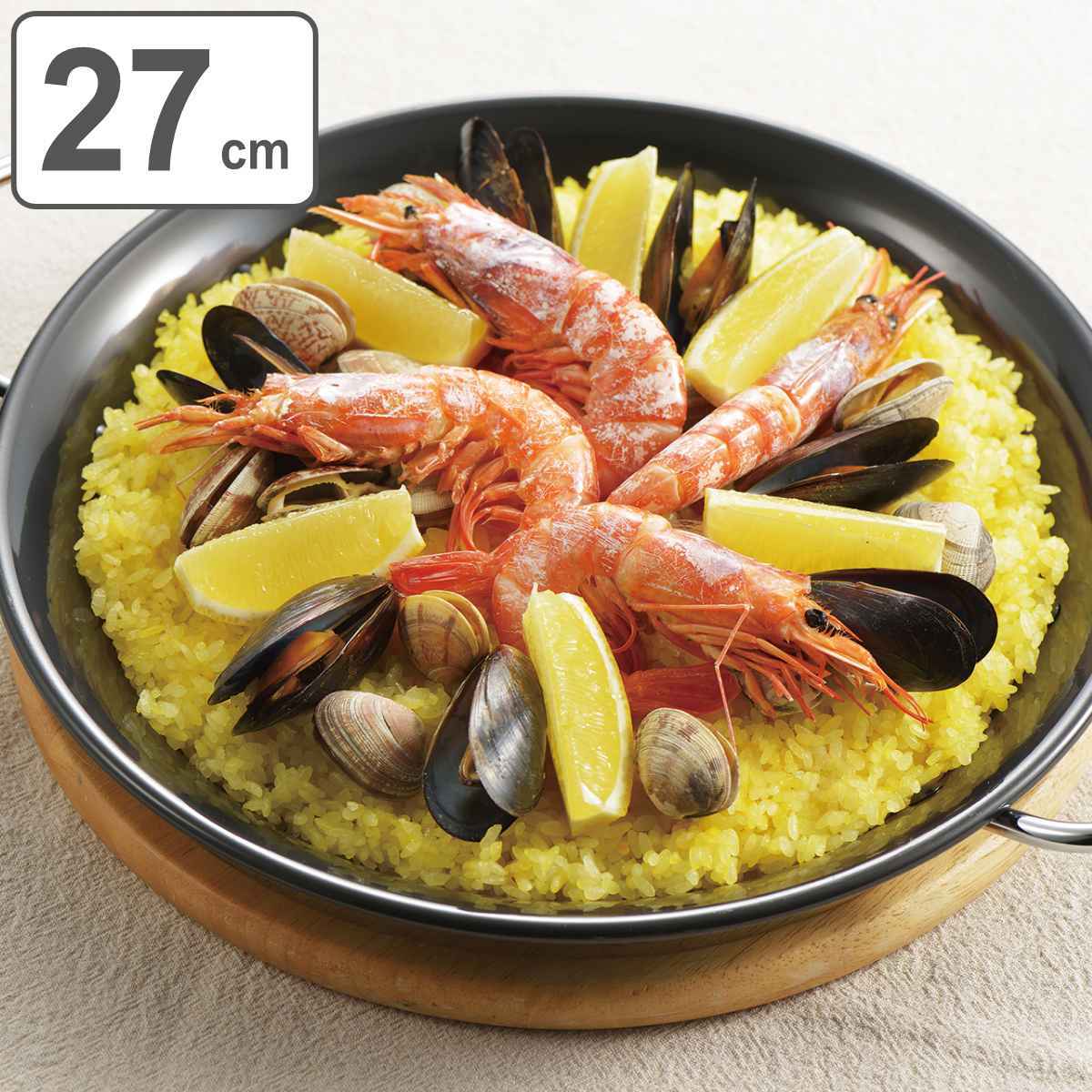 ラクッキングシリーズの鉄製ラウンドパン27cm直径約27cmの鉄製ラウンドパンです。ガス火、IH、魚焼きグリル、オーブンなどオール熱源対応です。熱伝導率が良いので短時間で美味しく調理できます。