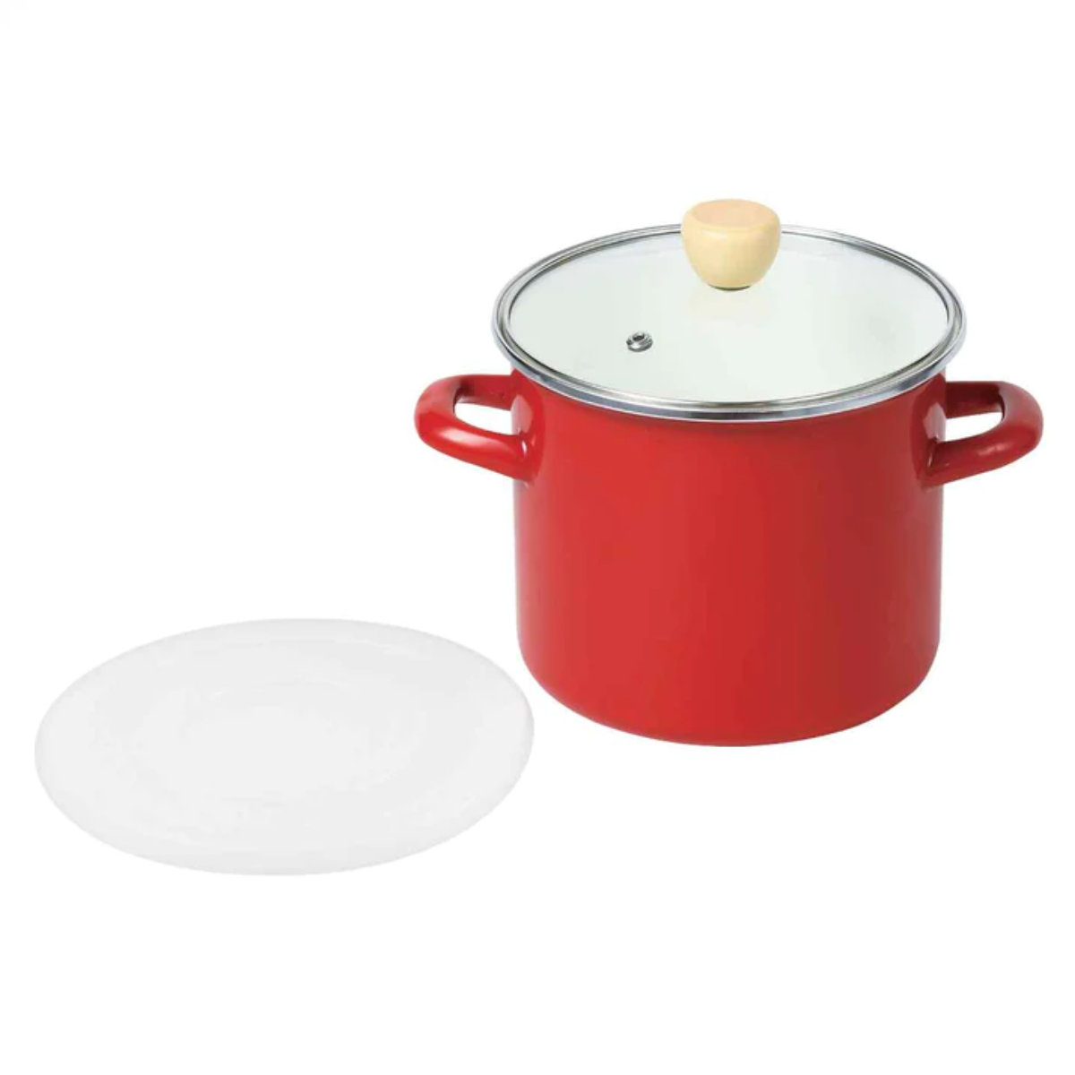 | 材質 | 本体:ほうろう用鋼板、ステンレス鋼 ガラス蓋:強化ガラス製器具(全面物理強化)、ステンレス鋼、天然木 シール蓋:ポリスエレン |