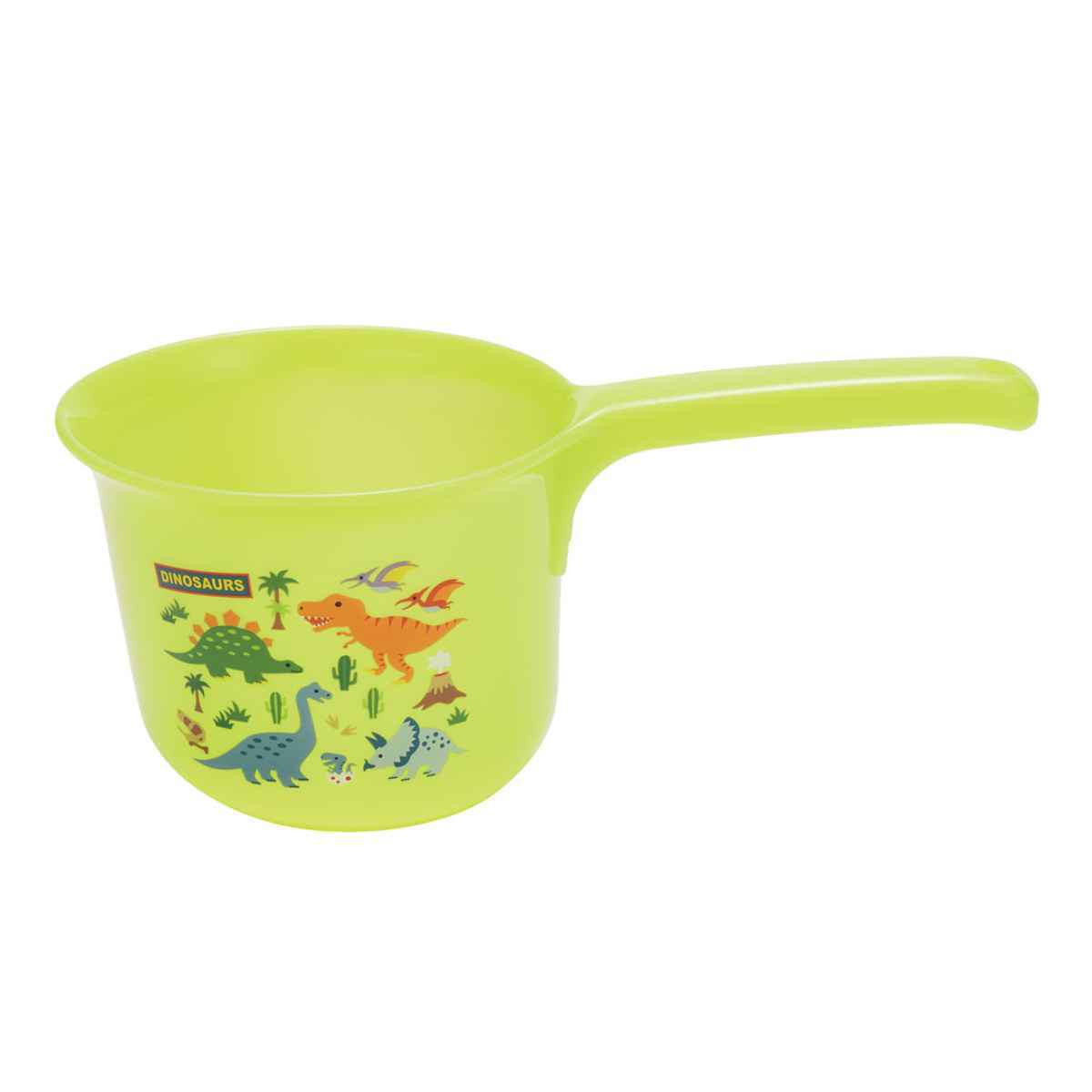お風呂が楽しくなる恐竜デザインの片手桶ディノサウルス柄の子供用の片手桶です。小振りなサイズで、お子様でも持ちやすいです。フックに掛けて干すことができます。